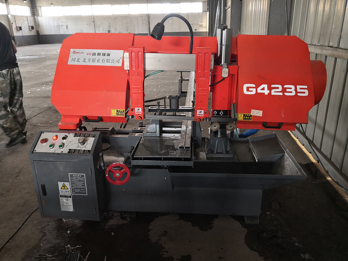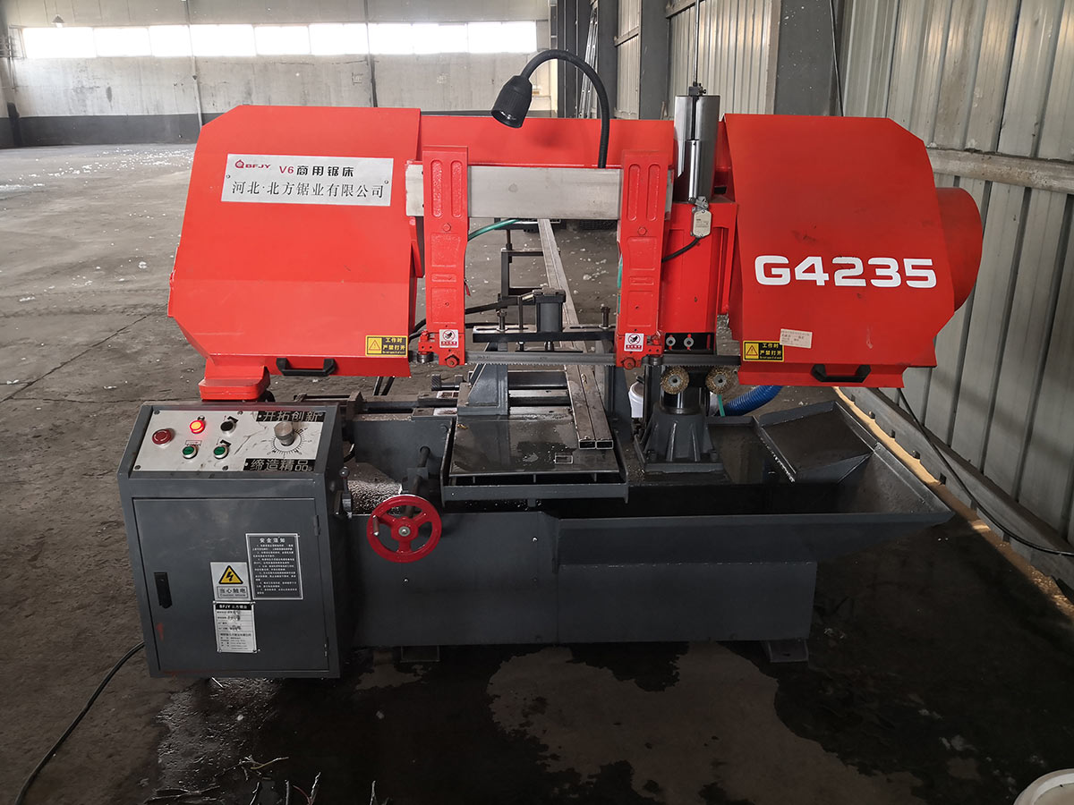 b ) 鋸床結構:臥式半自動、雙柱(主副立柱)